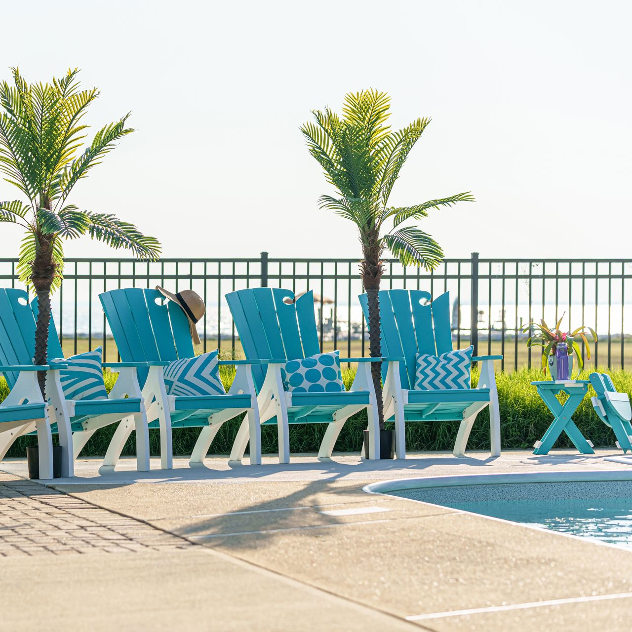 Bright colors, deeper tones, and colorful patio furniture work best when they serve a clear purpose. Smaller pieces give bold color a place to shine without dominating the entire space. A vibrant chair near the pool. A richer tone in a tucked-away seating area.